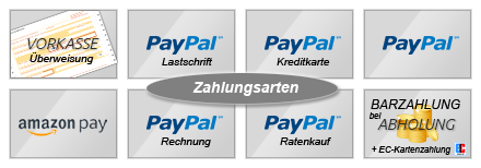 Hinweis: Die Zahlungsart Vorkasse nimmt in der Regel mehr Zeit in der Abwicklung Ihres Auftrags in Anspruch als andere Zahlungsarten. Von der Bearbeitung Ihres Auftrages, über die sich anschließende Überweisung durch die Bank bis hin zur Auslieferung Ihres Paketes können durchaus einmal 7 - 8 Werktage vergehen.